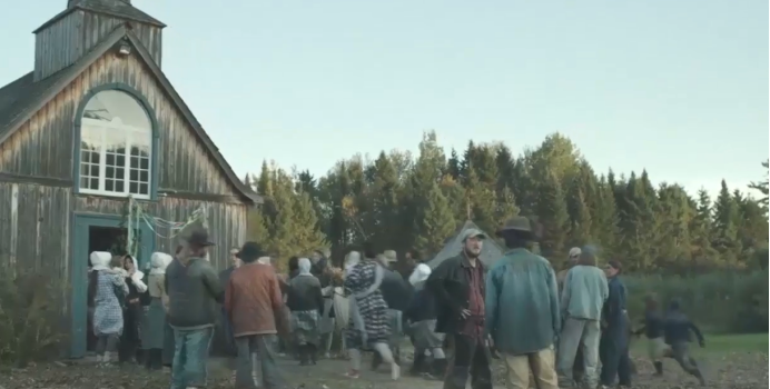 没办法,女村长只好默许这群流氓的行动,阿浩与小美慌不择路地躲进了一间仓库里,牧师提刀追赶,但被仓库内的机枪逼退了,原来是有几位母亲藏在这里保护孩子。