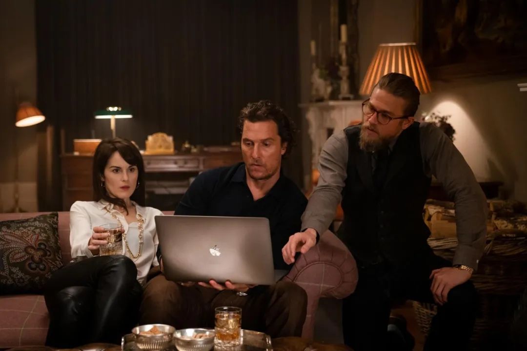 更重要的是《绅士们》和之前两部作品的调性和套路,说的都是所谓丛林法则下,片中所有人都活在盲目自信中,但最后都被多米诺骨牌和舞蝶效应爆发的不受控事态,搞得晕头转向,期间所有人处理事件发生的黑色幽默言行举止,正是影片的最大看点。