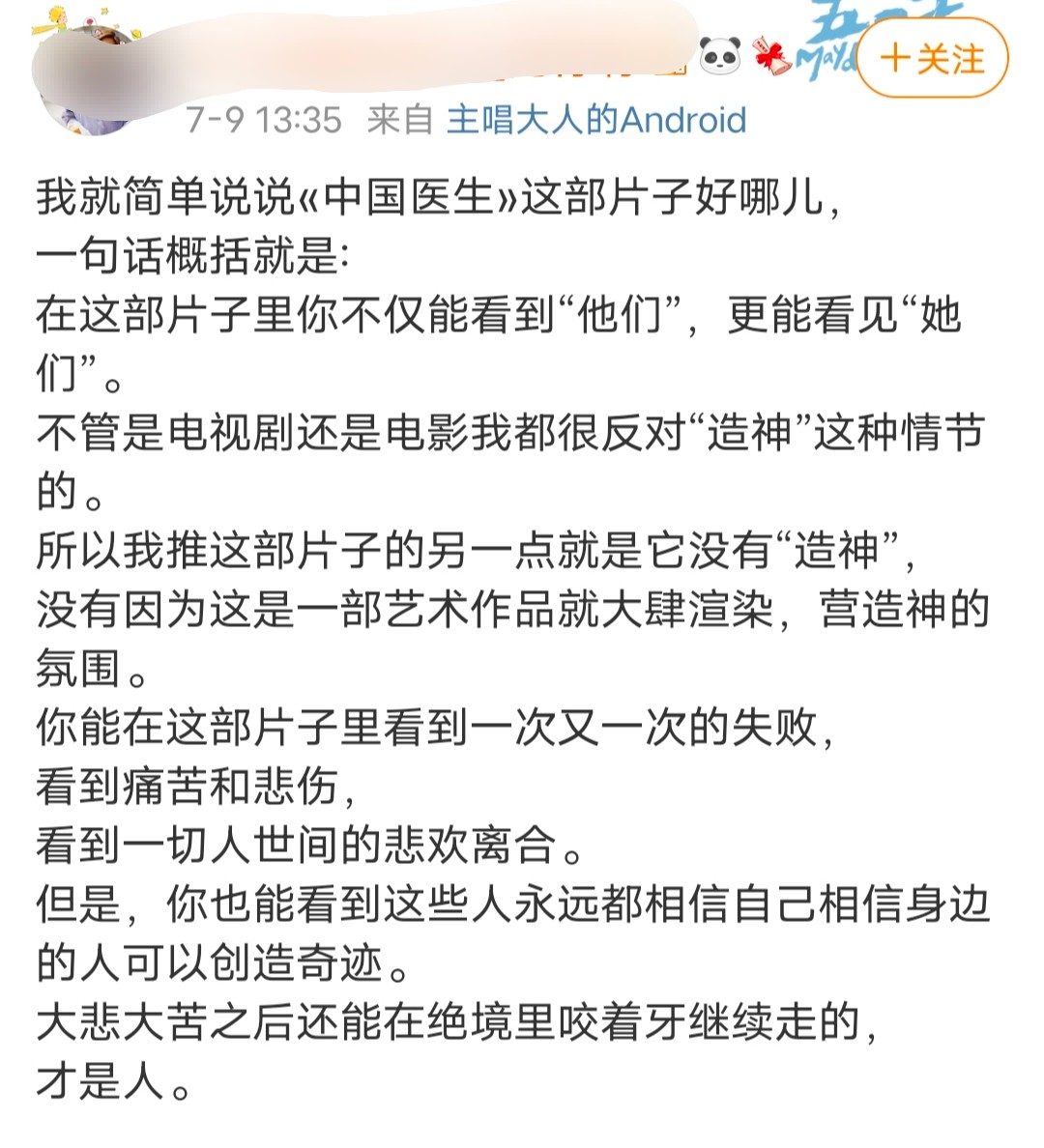 有机会一定要去电影院,亲自去回首那段艰难岁月,亲自致敬这些平凡且伟大的中国医生!